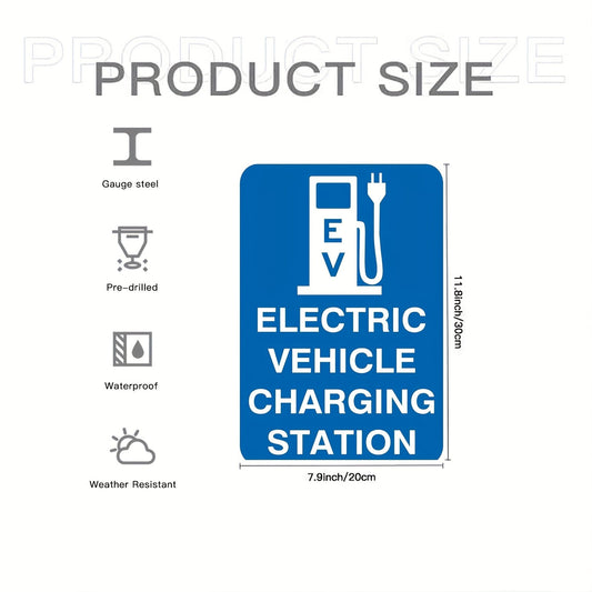 EV Charging Station Sign - 20.32x30.48 cm Durable with Classic Blue & White Design, Easy Installation for Electric Vehicle Owners, Retro Style Charging