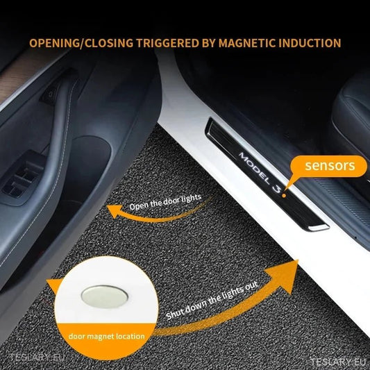 Tesla Model 3 / Y Wireless Magnetic LED Illuminated Door Sills ( 4 Pieces )