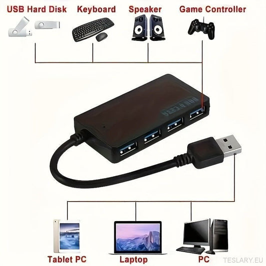USB 3.0 Hub, 4-port USB Hub, USB Splitter, Ultra-thin Mini Multi-port Expansion Data Cable, Suitable for PC, Tesla Data, Laptop [USB Adapter, USB Extender]