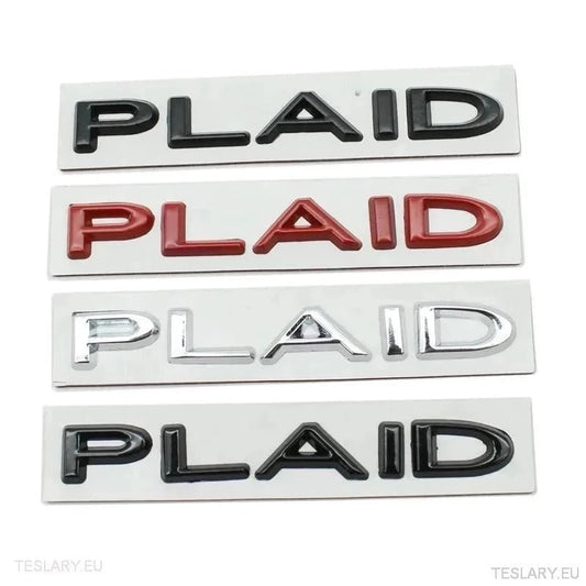 TESLA " PLAID " REAR LOGO EMBLEM IN CHROME & RED