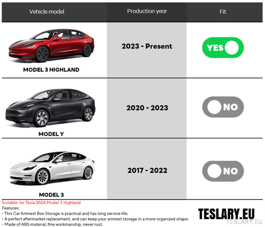 Tesla Model 3 / Y Armrest Hidden Storage Slide Style