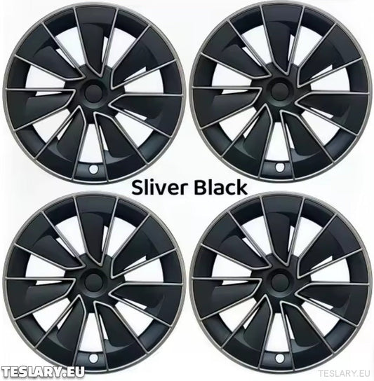 TESLA MODEL Y 19" UNIQUE S15 FULL COVER WHEEL HUBS BLACK & SILVER
