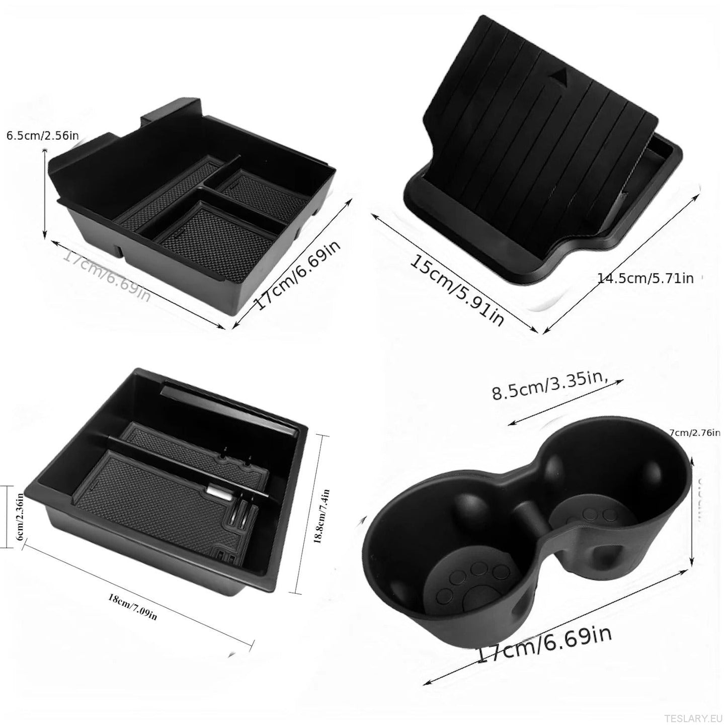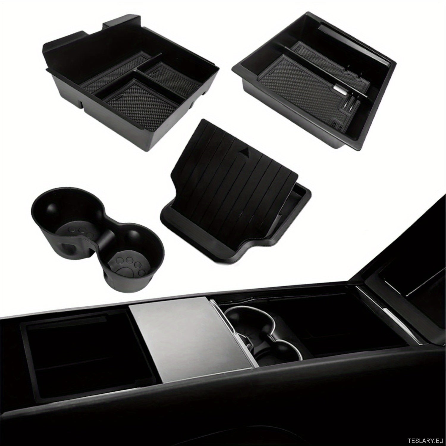 Tesla Model 3+ Highland / Model Y Juniper 4-1 Organizer Kit Centre Console Organizer Tray, ABS Material, Smooth-Slide Armrest Storage Box with Cup Holder, Compatible with Highland Model ONLY!