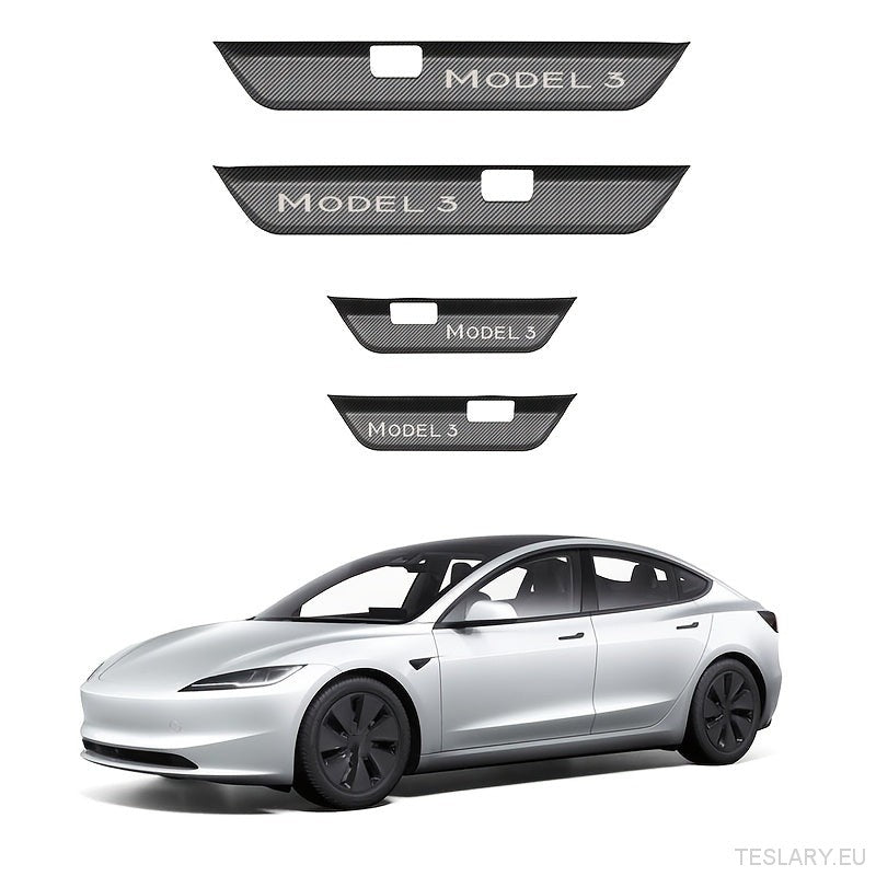 Tesla Model 3+ Highland Edition - Door Sill Protectors with Carbon Fiber Pattern