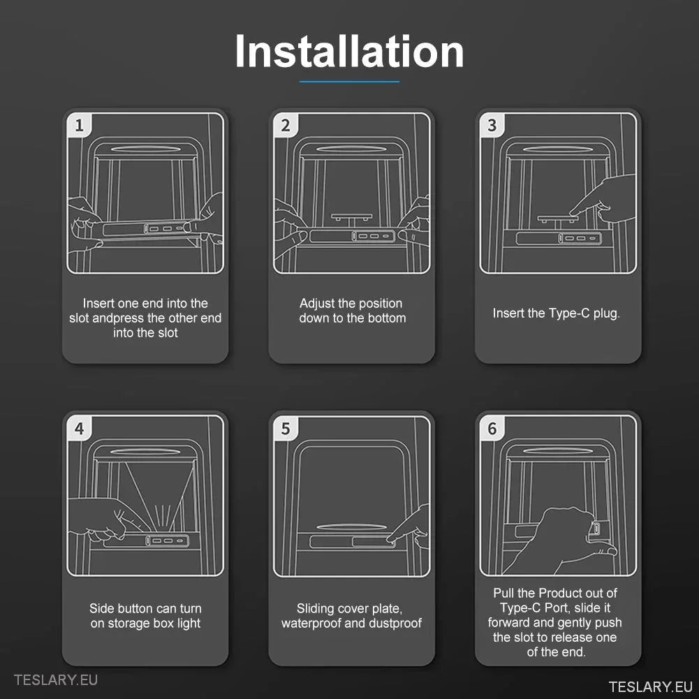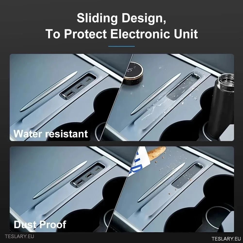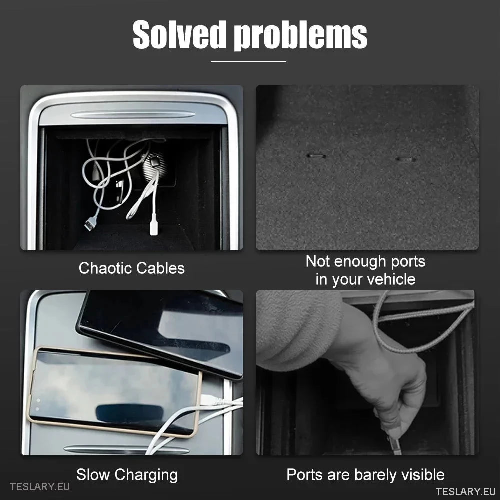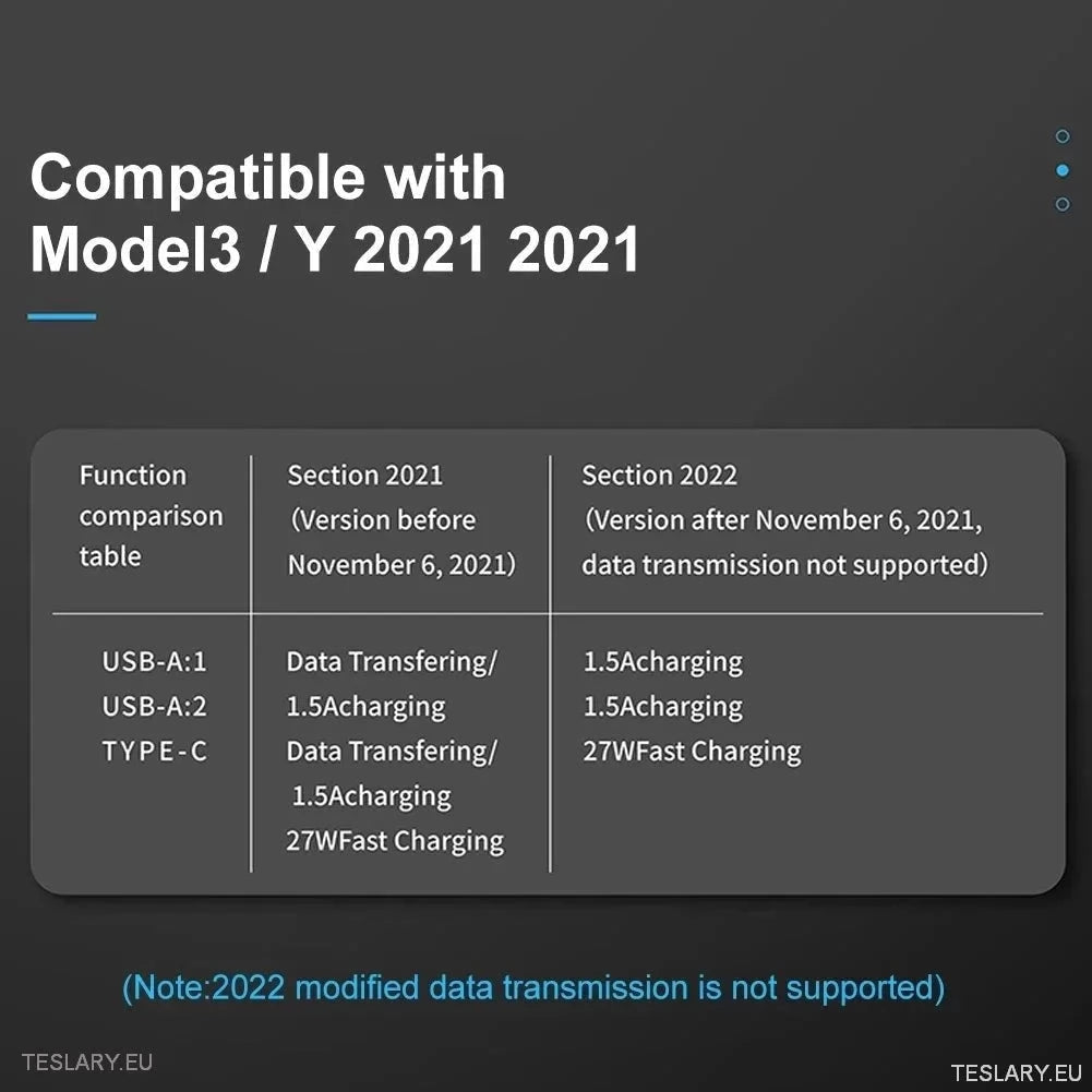*1. The specially designed USB docking station is compatible with Tesla Model 3/Model Y 2021-2022(after the Nov.6th, 2021) center console perfectly, without affecting the interior look and normal use of the storage box.