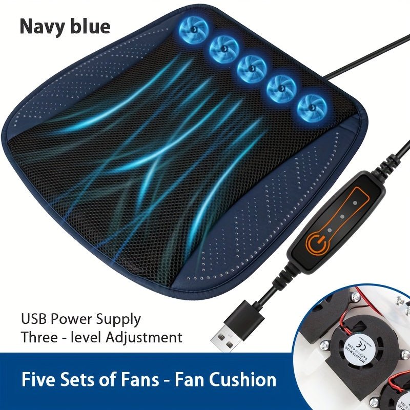 Stay cool and comfortable during hot summer drives with this Car Ventilated Seat Cushion featuring a built-in USB fan. Designed to prevent sweat and heat buildup, it keeps you fresh even in heavy traffic or long trips. Its breathable construction promotes airflow, eliminating the discomfort of sticky, damp seats. The sleek black cushion with blue accents adds a stylish touch to any car interior and fits universally, including Tesla Model 3, Y, S, and X. Easy to install and durable, this seat cushion is a smart upgrade for anyone seeking enhanced comfort and a cooler ride. Invest in your comfort and enjoy every journey with confidence.