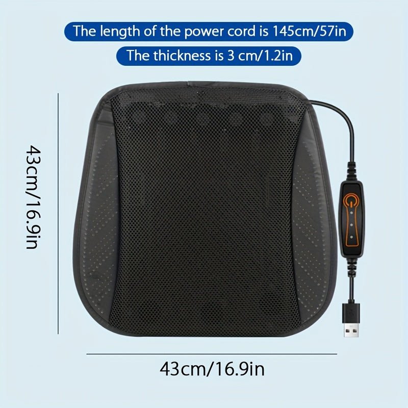 Experience enhanced comfort during hot weather with this Car Ventilated Seat Cushion featuring a built-in USB fan. Crafted from breathable cotton, it promotes airflow to prevent heat buildup and moisture, keeping you cool and dry even on the hottest days. Designed to fit most car seats, including Tesla Model 3, Y, S, and X, it offers a practical solution for long drives or daily commutes. The sleek black design with blue accents adds a modern touch while ensuring durability. Stay comfortable and focused behind the wheel with this effective cooling seat mat.
