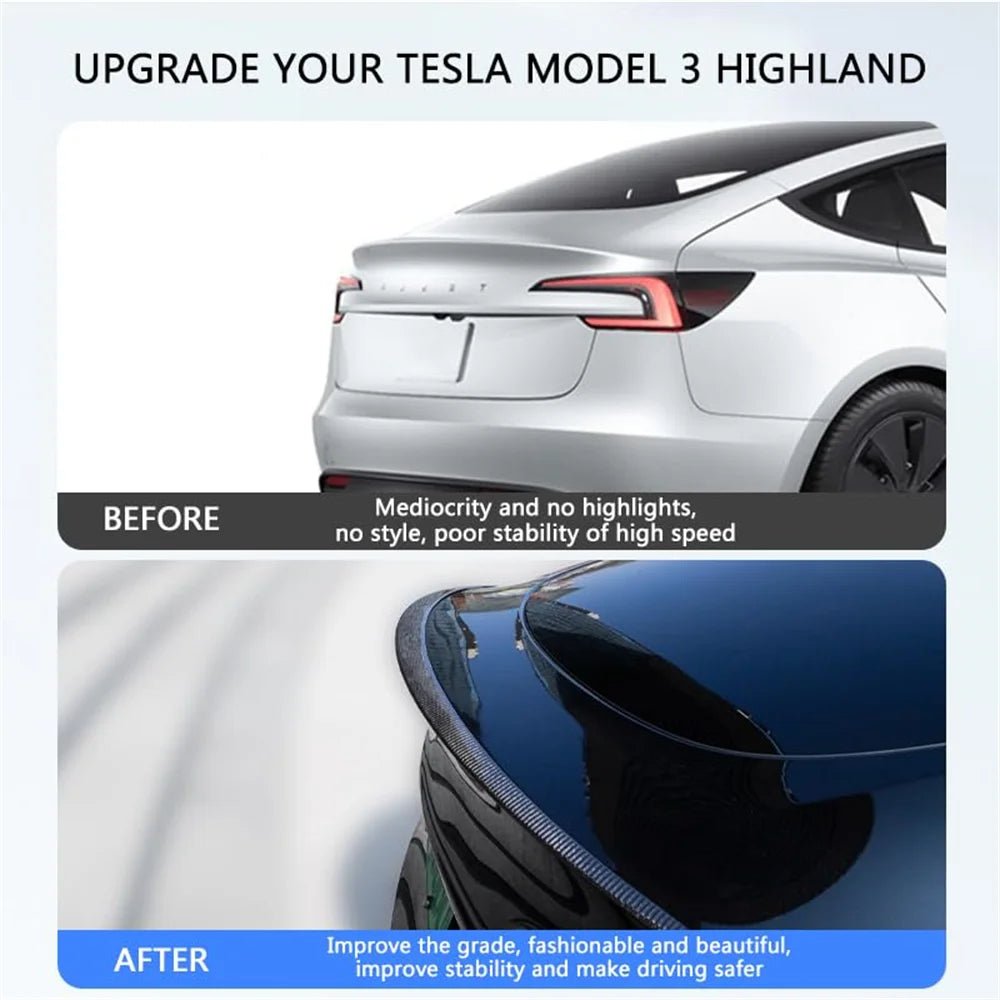 This spoiler is precisely designed to fit Tesla Model 3 Highland 2024 . It’s a custom accessory that looks factory-made, enhancing your car’s style with a perfect fit. Be sure to select the correct spoiler for your specific model to achieve the best look and performance.