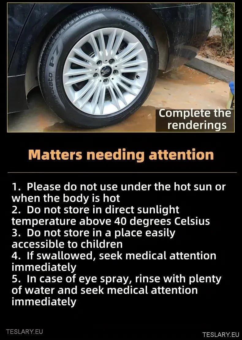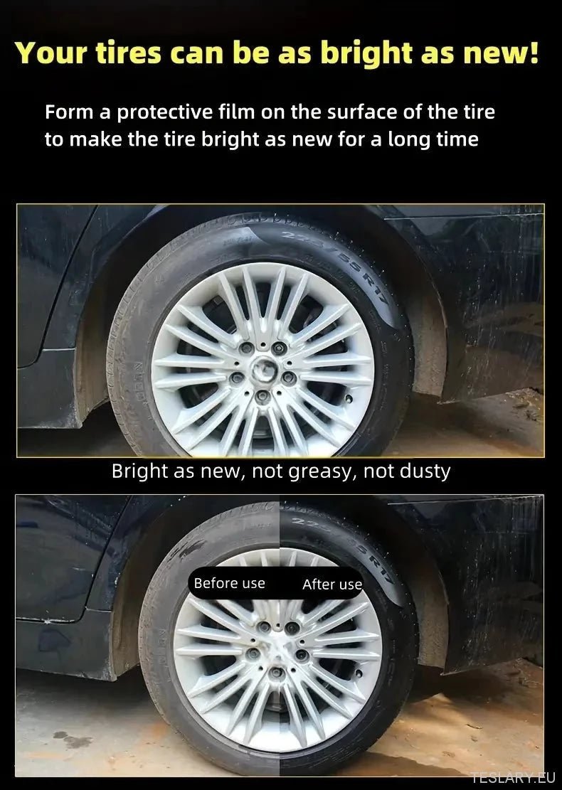 - Clean and dry the tires before use,apply tire maintenance paste evenly to the tires ,wait 5-10 minutes.