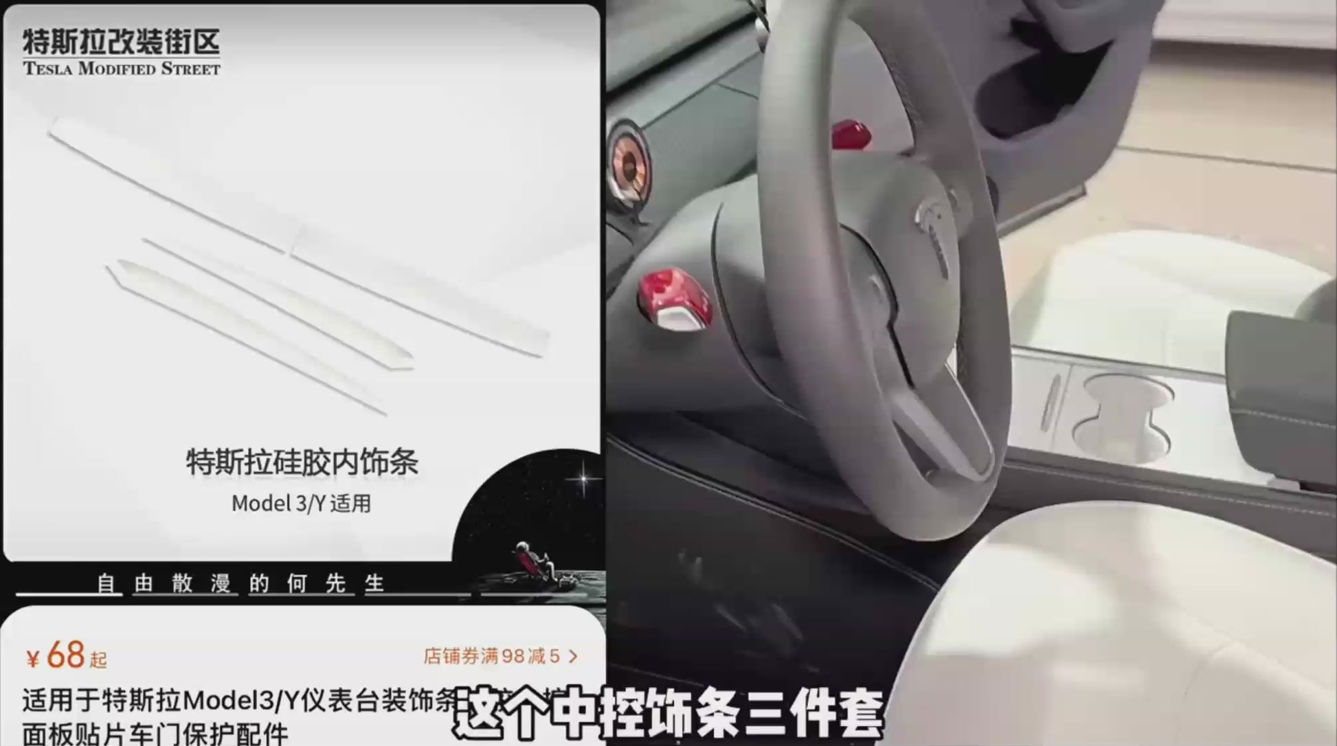 Silicone Dashboard Cover with Door Panel Inserts for Tesla 3/Y ( WHITE )