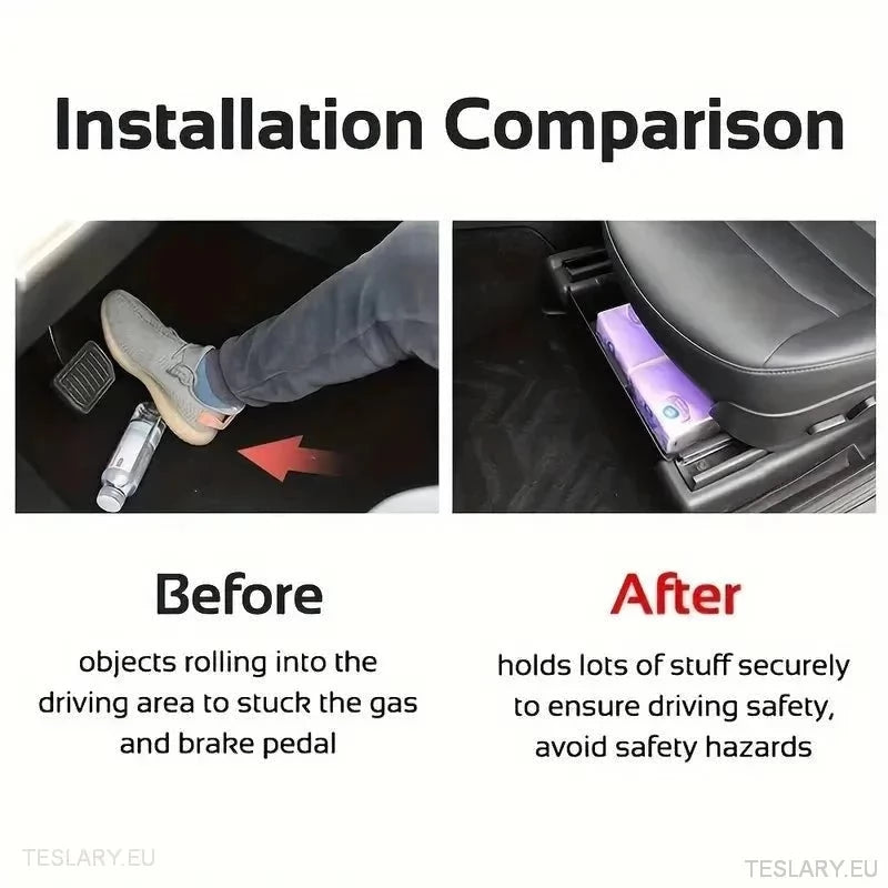 I have installed 2 of these in my 2024 Model Y Dual Motors and under the drivers seat I have cleaning materials including a Wireless Vacuum Cleaner and in the passenger side I keep documents.