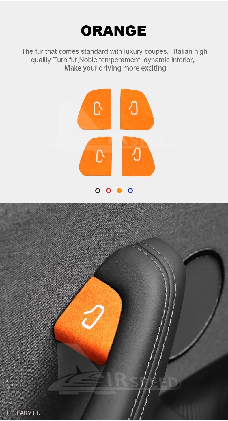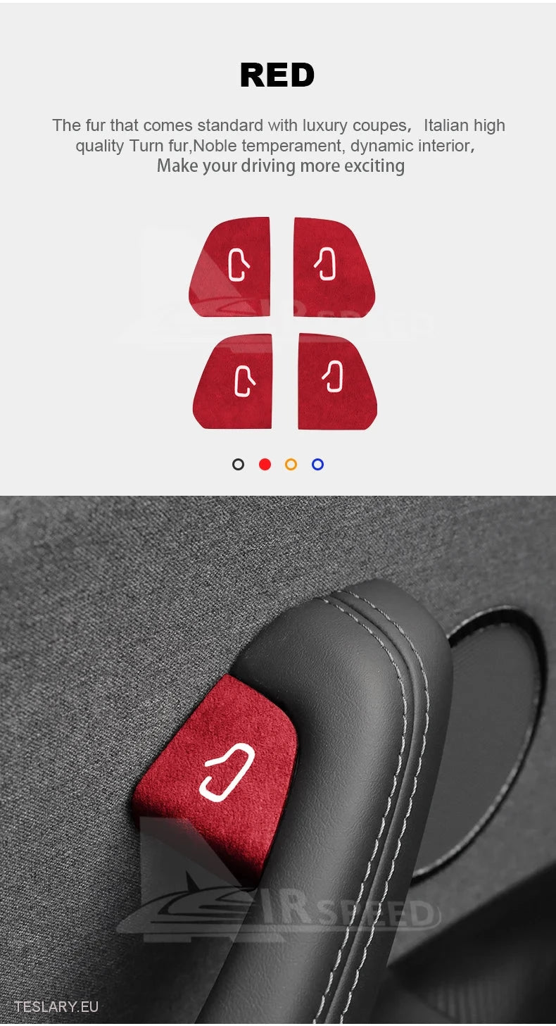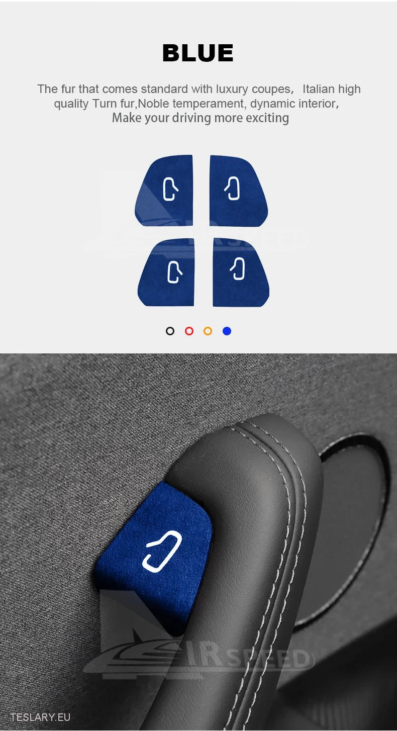 5. Restore the pristine look of your Tesla Model 3 Highland and Model Y Juniper interiors with these Italian Alcantara suede button covers. Expertly designed to conceal existing signs of wear, they refresh your car’s accessories, making them appear brand new. Installation is straightforward and tool-free—simply peel and stick for an immediate upgrade. Crafted with durable materials, these covers are washable with water, ensuring long-lasting cleanliness and maintenance. Featuring a vibrant, colorful surface and meticulous design, they not only protect but also enhance your vehicle’s interior aesthetics, delivering a refined and personalized touch that complements your Tesla’s sophisticated style.