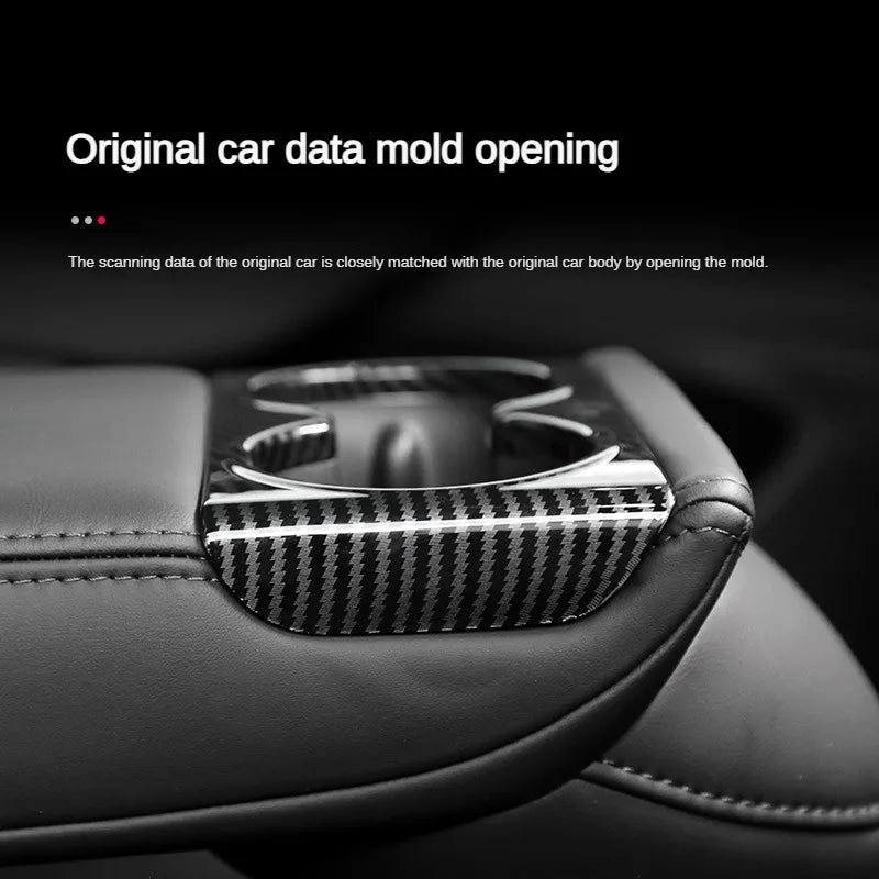 Upgrade your Tesla Model 3 Highland or Model Y+ with this Juniper rear cup panel trim protector cover, designed to combine style and function effortlessly. Made from durable ABS material with a carbon fiber finish, it adds a sleek, luxurious look while shielding your cup panel from scratches, spills, and daily wear. Installation is quick and straightforward, making it an easy way to enhance your car’s interior without breaking the bank. This accessory not only protects but also elevates your vehicle’s aesthetic, perfect for those who value both practicality and style. Treat your car—and your social feed—to this must-have upgrade.