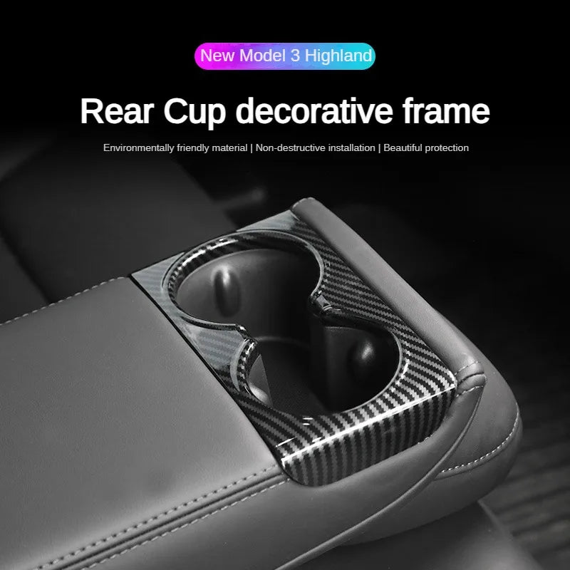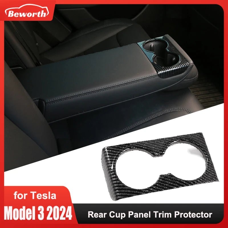 Tesla Model 3 Highland / Model Y+ Juniper Rear Cup Panel Trim Protector Cover ABS Carbon Fiber Style