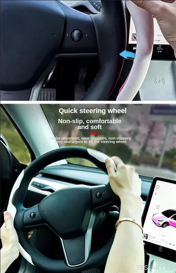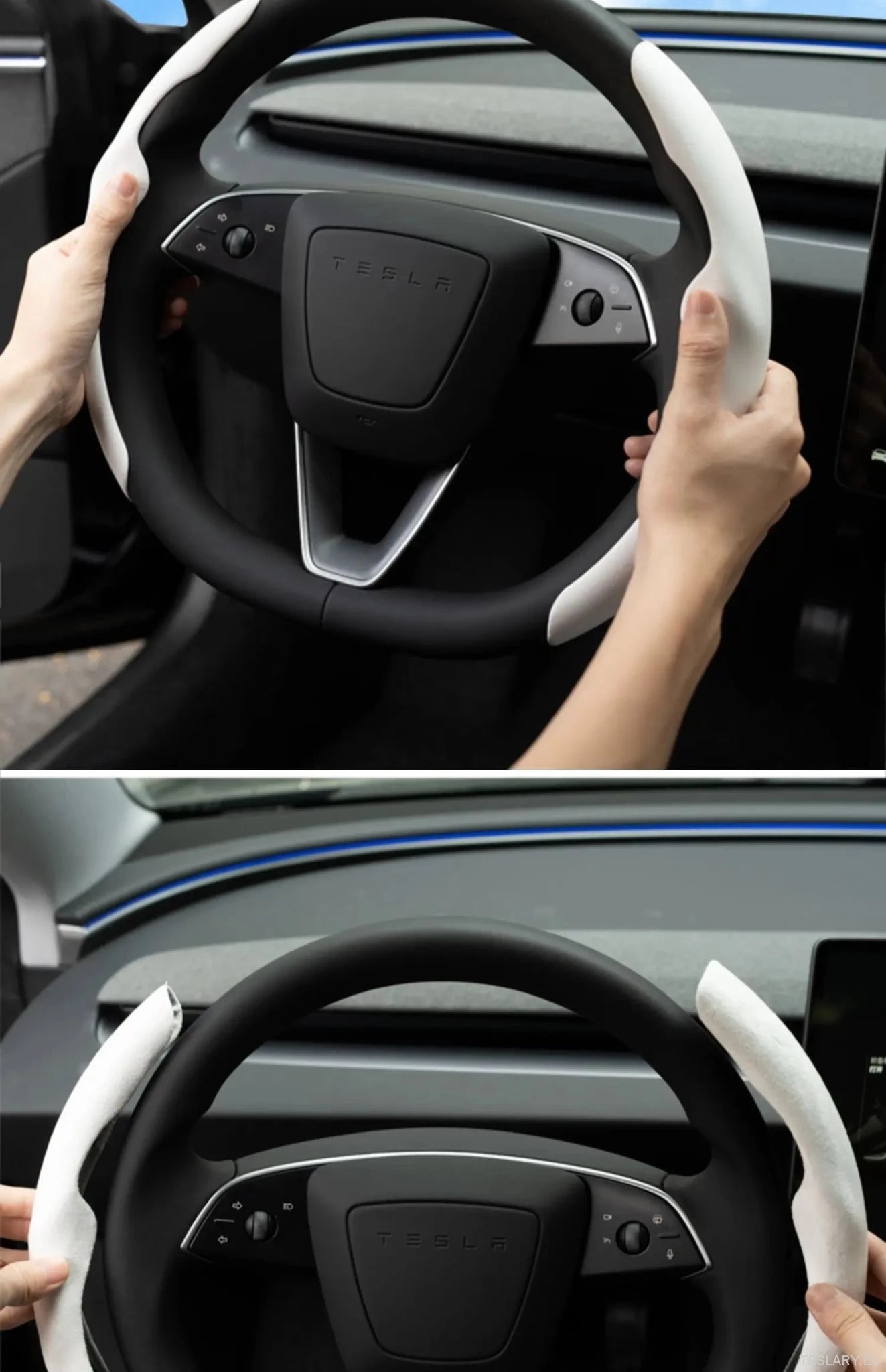 Elevate your driving experience with the ultra-thin, sweat-absorbing Tesla Model 3 / Y steering wheel cover. Designed for Model 3 Highland & Model Y Juniper, this professional-grade accessory offers added comfort, protection, and style to your personal space on wheels. Scientifically crafted to enhance your car's interior, this is no ordinary steering wheel cover. Make a statement and feel confident while driving, knowing your investment is protected and your car looks top-notch. Upgrade to this must-have accessory and instantly elevate your driving game.