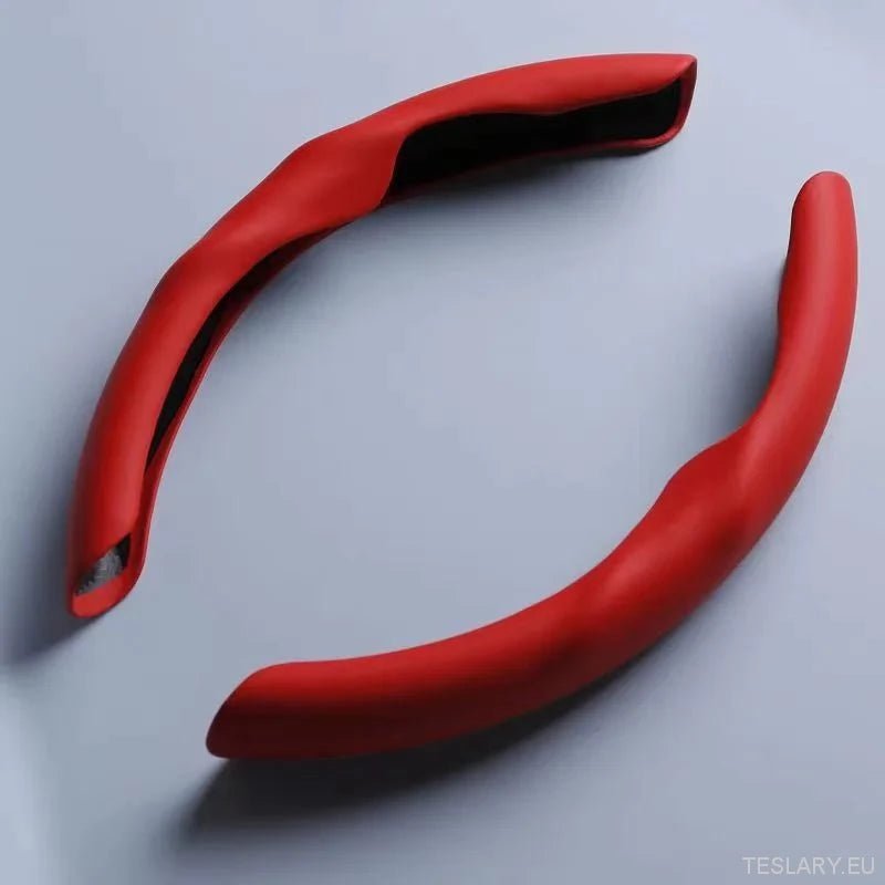 SUITABLE FOR THE TESLA MODEL 3+ HIGHLAND AND THE TESLA MODEL Y+ JUNIPER - STEERING WHEEL COVERS IN RED & WHITE