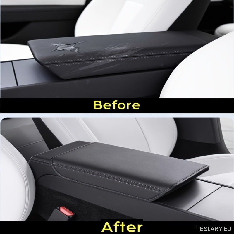 SUITABLE FOR THE TESLA MODEL 3 2019 - 2024 , TESLA MODEL Y 2022 - 2025 , TESLA MODEL 3+ HIGHLAND AND TESLA MODEL Y+ JUNIPER - PU LEATHER CENTRE CONSOLE ARMREST COVER PU LEATHER