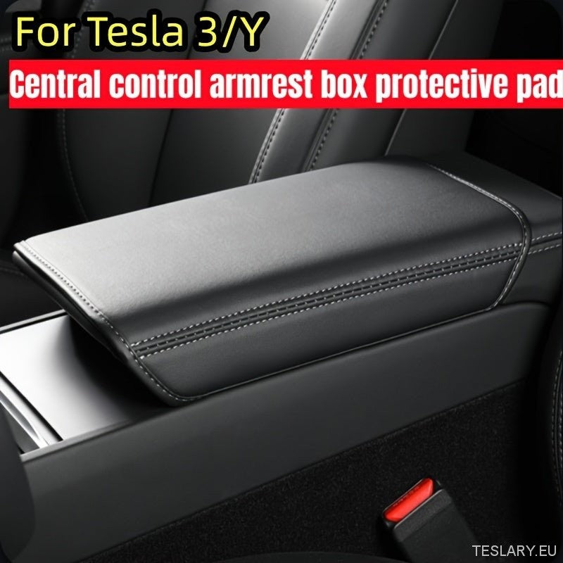 Premium PU Leather Armrest Box Protector Pad for Tesla Model 3/Y - Central Console Protection, Fit, Durable & Stylish Interior Upgrade