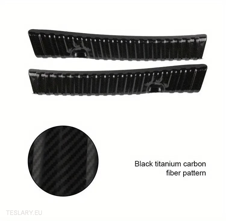 Protect your plastic trunk trim from serious wear and wear including scratchs by adding the Metal Trunk Guard which is designed to look well and to protect your Tesla from signs of wear and tear. Made from High Grade Aluminium the finished in Black or Black Carbon Fiber these Metal Trunk Guards are designed to look well and last for many years. Installation takes no more than a few minutes using the already in place double sided automotive tape.
