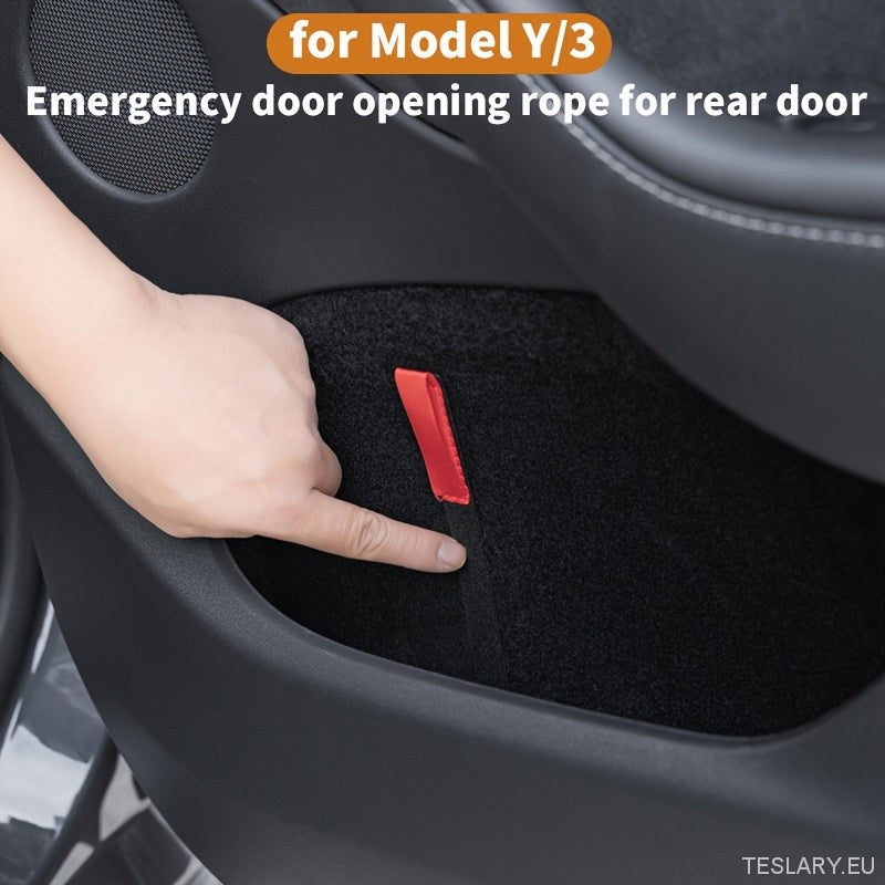 Tesla for Model Y/3 Rear Door Emergency Safety Pull Rope - Red Handle & Black Car Interior Accessories, Easy Install Emergency Door Unlocking Handle for Enhanced Safety & Convenience