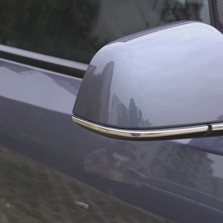Decorative Anti-Collision Strip for the passenger and driver side mirrors of your Tesla Model Y. Easy Installation with automotive double sided tape which is strong enough to last for many years.