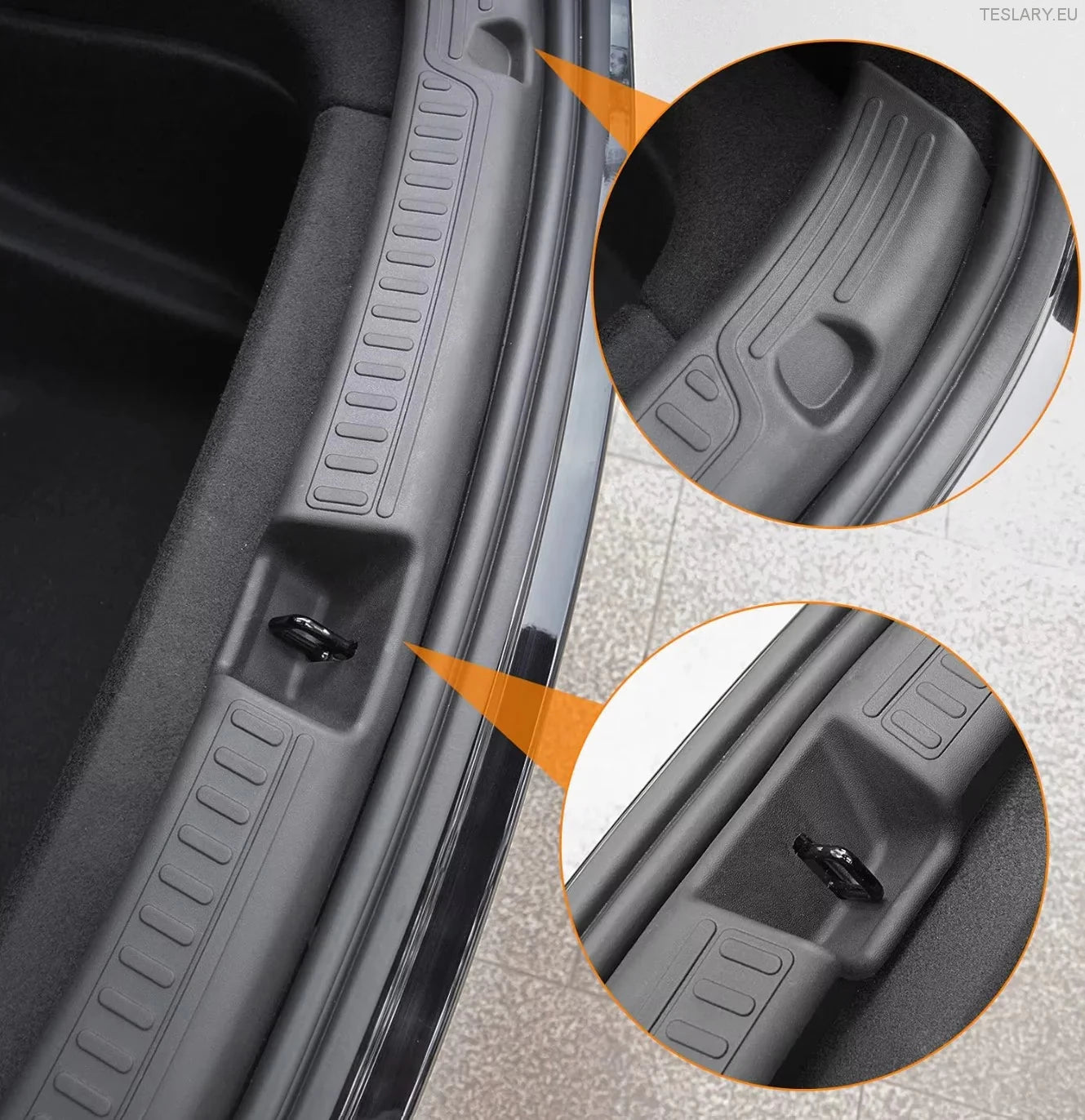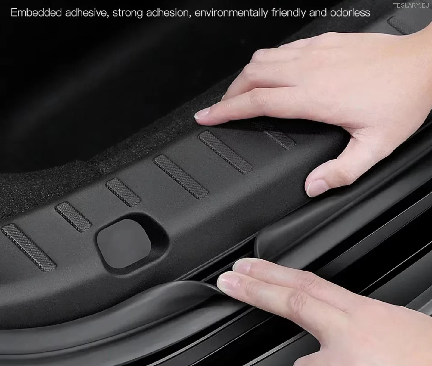 For Tesla Model Y 2021 - 2024 Trunk Threshold Strip TPE Back Sill Anti Scratch Protection Guard which is a single piece of flexible TPU plastic which is strong , durable and designed to be invisible as well as being designed to protect your Tesla and to ensure it always looks as good as the day it left the factory.