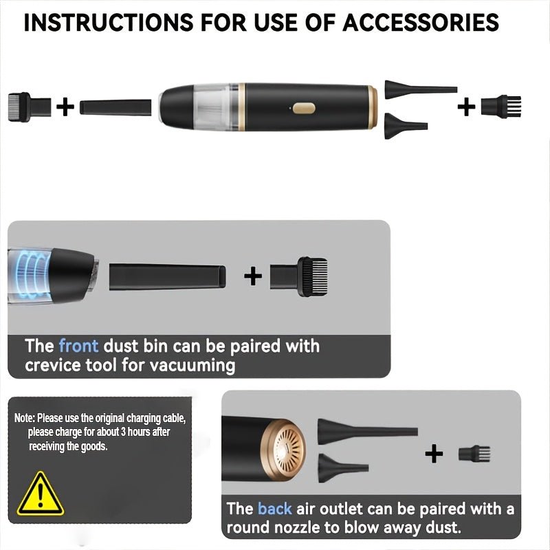 Wireless Portable Vacuum Cleaner, Suction and Blowing Function - Strong Power for your Tesla , BYD , MG or other EV